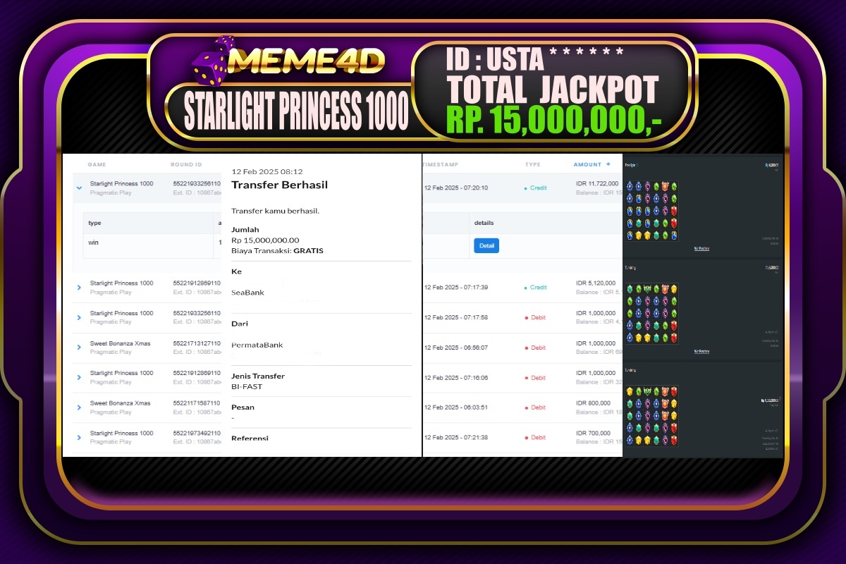 Bukti Jp MEME4D Slot Online 12 Februari 2025– MEME 4D merupakan situs terpercaya yang selalu membayar berapapun kemenangan semua pemain nya.