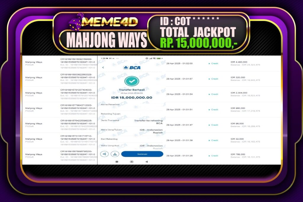 Bukti Jp MEME4D Slot Online 29 April 2025– MEME 4D merupakan situs terpercaya yang selalu membayar berapapun kemenangan semua pemain nya.