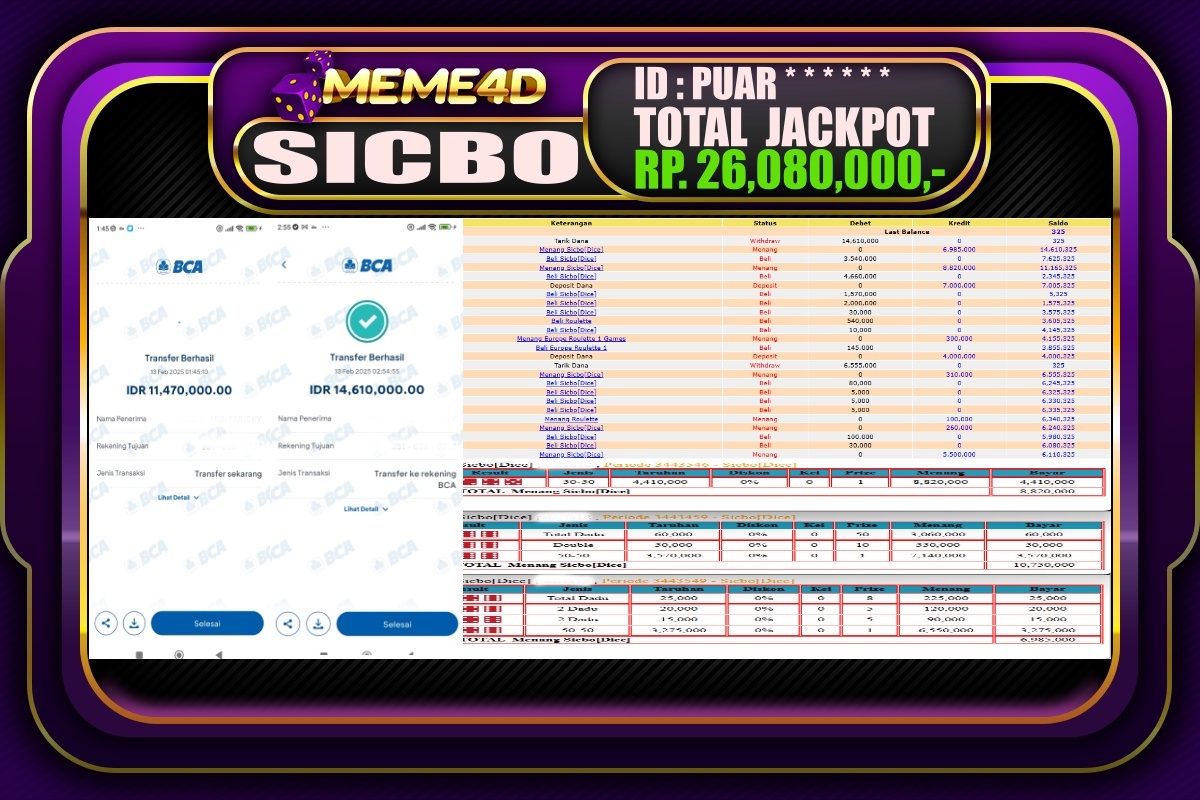 Bukti Jp MEME4D Casino Online 13 Februari 2025– MEME 4D merupakan situs terpercaya yang selalu membayar berapapun kemenangan semua pemain nya.