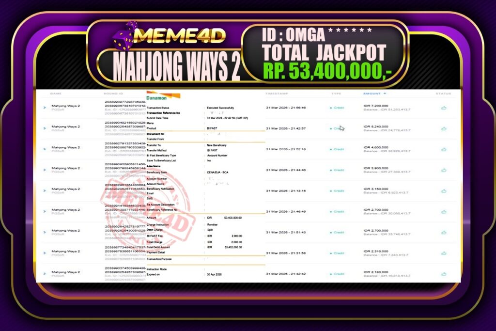 Bukti Jp MEME4D Slot Online 01 April 2026 – MEME4D merupakan situs terpercaya yang selalu membayar berapapun kemenangan semua pemain nya.