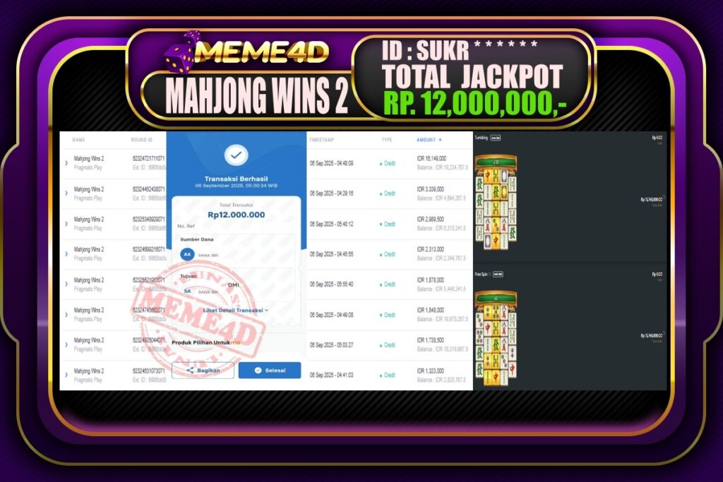Bukti Jp MEME4D Slot Online 06 September 2025– MEME 4D merupakan situs terpercaya yang selalu membayar berapapun kemenangan semua pemain nya.