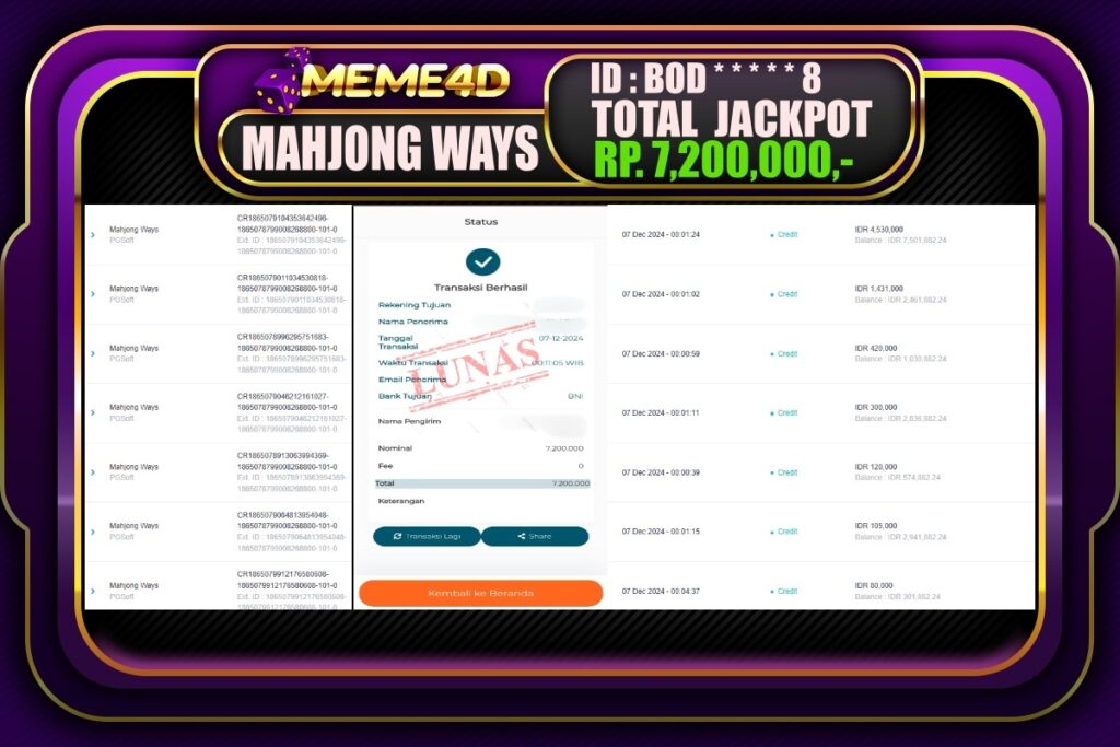 Bukti Jp MEME4D Slot Online 07 DECEMBER 2024