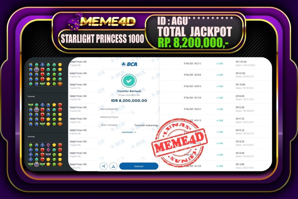 Bagi para pemain judi, tidak ada yang lebih memuaskan daripada melihat bukti nyata kemenangan dari pemain lain. Di Meme4D, banyak cerita inspiratif tentang jackpot yang telah dimenangkan, menunjukkan bahwa keberuntungan bisa datang kepada siapa saja. Setiap jackpot yang diraih bukan hanya hadiah uang, tetapi juga semangat dan motivasi bagi semua pemain untuk terus bermain dan mencoba peruntungan mereka.