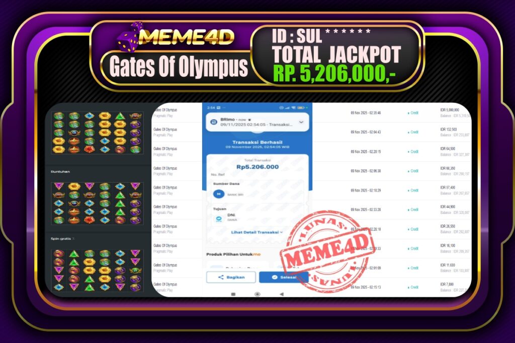 Bukti Jp MEME4D Slot Online 09 November 2025– MEME 4D merupakan situs terpercaya yang selalu membayar berapapun kemenangan semua pemain nya.