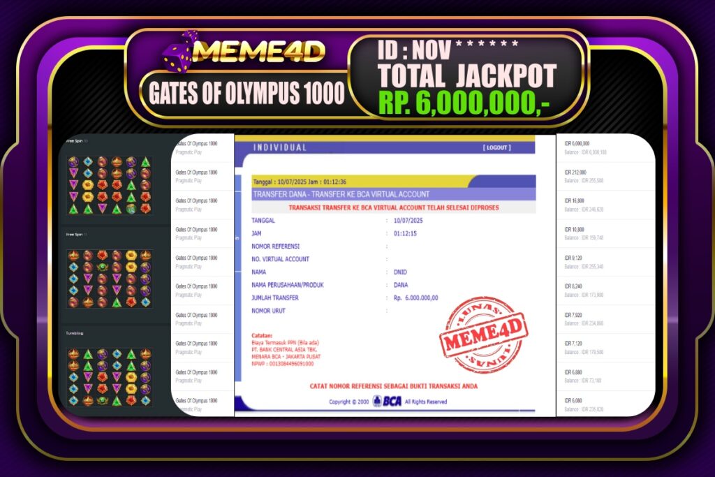 Bukti Jp MEME4D Slot Online 10 Juli 2025– MEME 4D merupakan situs terpercaya yang selalu membayar berapapun kemenangan semua pemain nya.