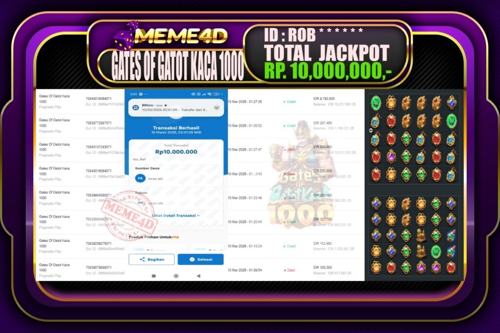 Bukti Jp MEME4D Slot Online 10 March 2026 – MEME4D merupakan situs terpercaya yang selalu membayar berapapun kemenangan semua pemain nya.