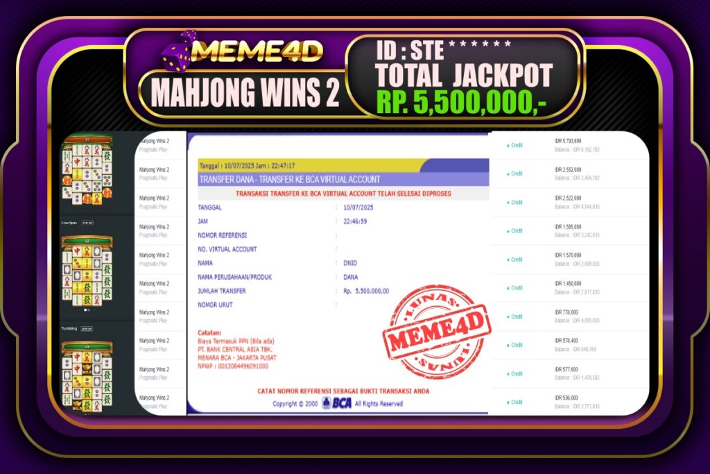 Bukti Jp MEME4D Slot Online 11 Juli 2025– MEME 4D merupakan situs terpercaya yang selalu membayar berapapun kemenangan semua pemain nya.