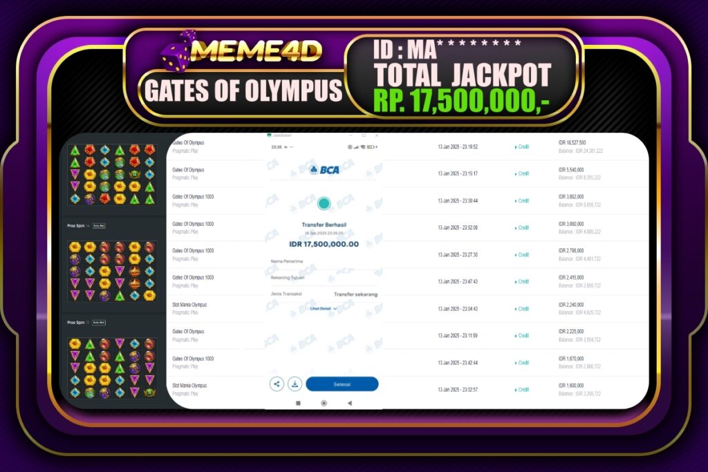 Bagi para pemain judi, tidak ada yang lebih memuaskan daripada melihat bukti nyata kemenangan dari pemain lain. Di Meme4D, banyak cerita inspiratif tentang jackpot yang telah dimenangkan, menunjukkan bahwa keberuntungan bisa datang kepada siapa saja. Setiap jackpot yang diraih bukan hanya hadiah uang, tetapi juga semangat dan motivasi bagi semua pemain untuk terus bermain dan mencoba peruntungan mereka.
