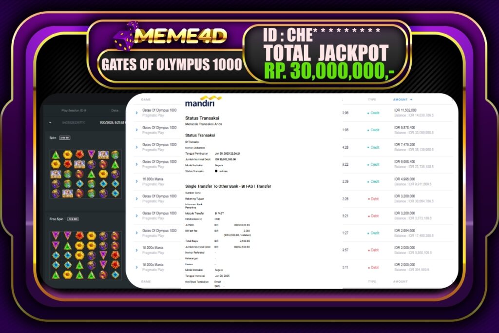 Bukti Jp MEME4D Slot Online 21 JANUARI 2025– MEME 4D merupakan situs terpercaya yang selalu membayar berapapun kemenangan semua pemain nya.