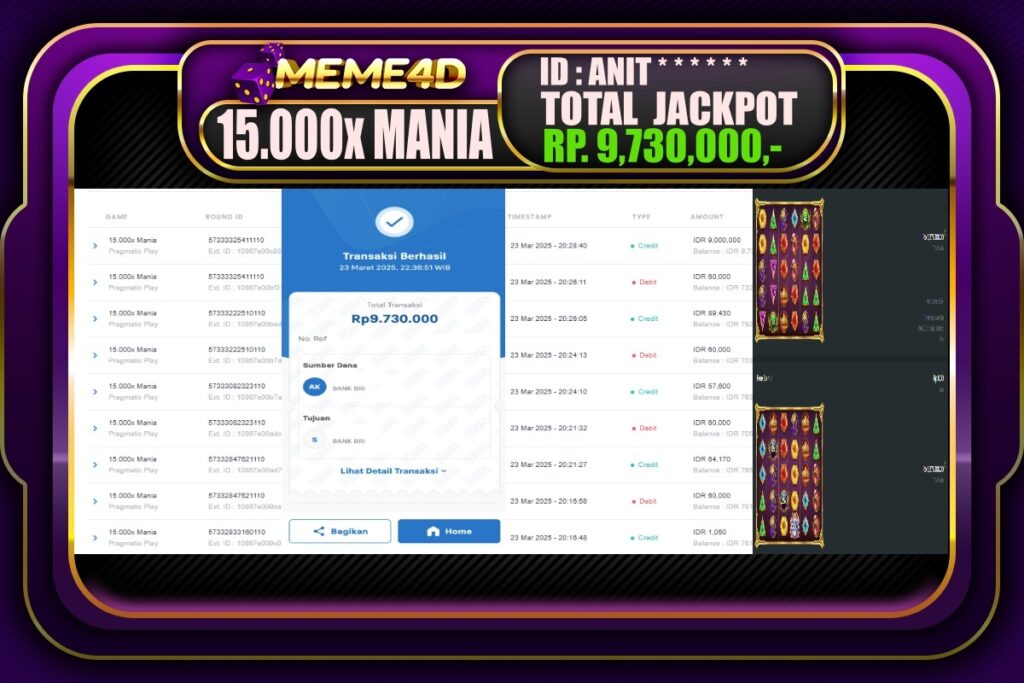 Bagi para pemain judi, tidak ada yang lebih memuaskan daripada melihat bukti nyata kemenangan dari pemain lain. Di Meme4D, banyak cerita inspiratif tentang jackpot yang telah dimenangkan, menunjukkan bahwa keberuntungan bisa datang kepada siapa saja. Setiap jackpot yang diraih bukan hanya hadiah uang, tetapi juga semangat dan motivasi bagi semua pemain untuk terus bermain dan mencoba peruntungan mereka.