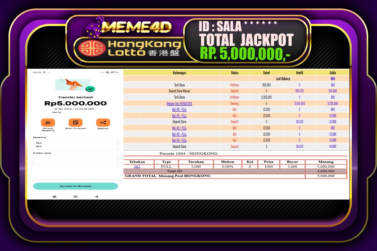 Bukti Jp MEME4D Togel Online 19 April 2025– MEME 4D merupakan situs terpercaya yang selalu membayar berapapun kemenangan semua pemain nya.