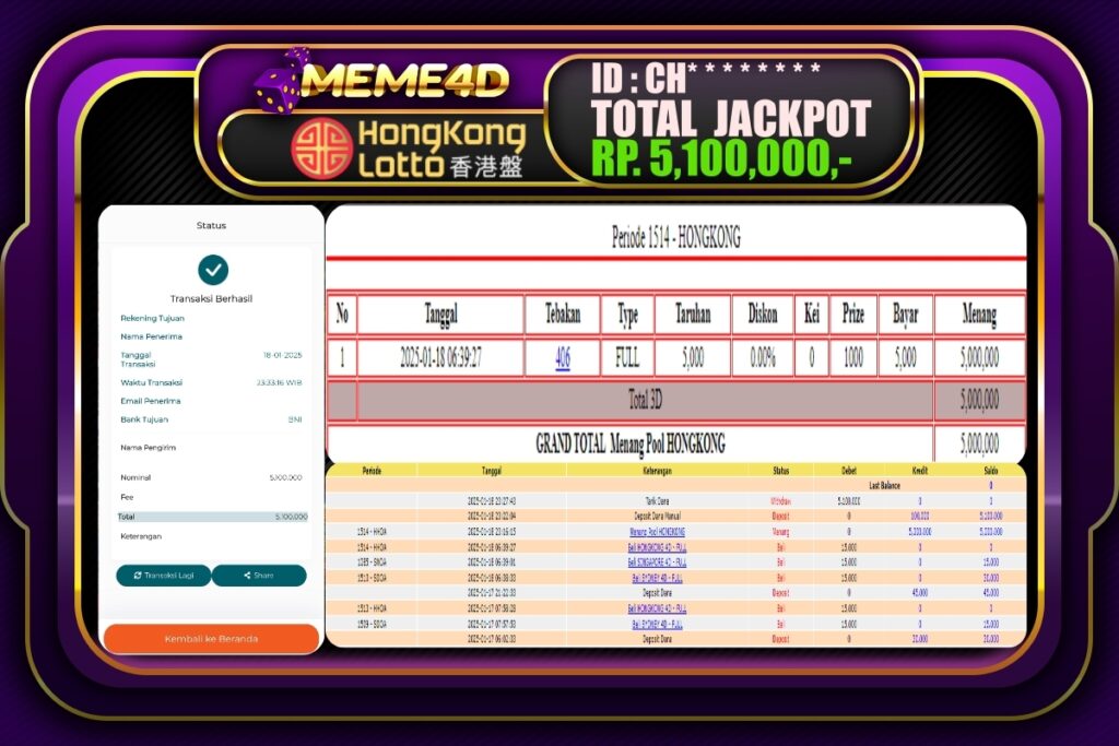 Bukti Jp MEME4D Togel Online 19 JANUARI 2025 – MEME 4D merupakan situs terpercaya yang selalu membayar berapapun kemenangan semua pemain nya.
