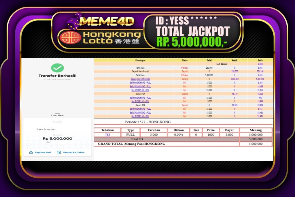 Bukti Jp MEME4D Togel Online 23 Maret 2025– MEME 4D merupakan situs terpercaya yang selalu membayar berapapun kemenangan semua pemain nya.
