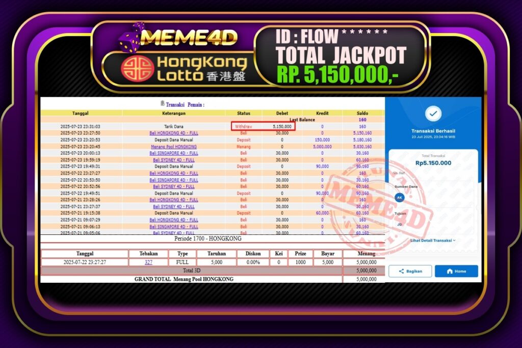 Bukti Jp MEME4D Togel Online 24 Juli 2025– MEME 4D merupakan situs terpercaya yang selalu membayar berapapun kemenangan semua pemain nya.