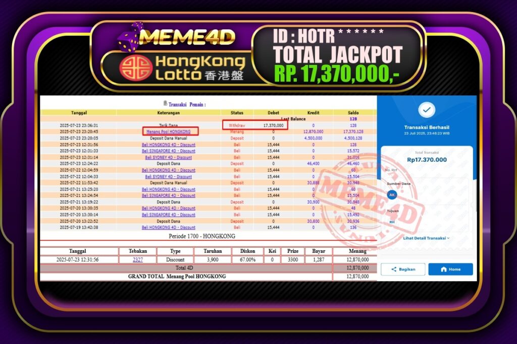 Bukti Jp MEME4D Togel Online 24 Juli 2025– MEME 4D merupakan situs terpercaya yang selalu membayar berapapun kemenangan semua pemain nya.