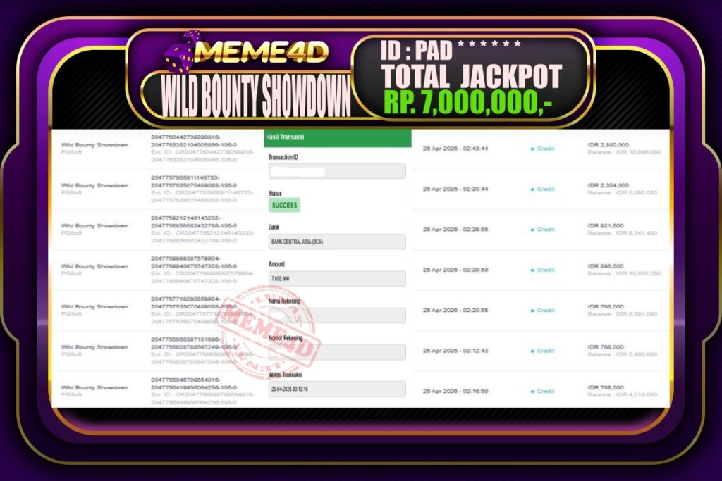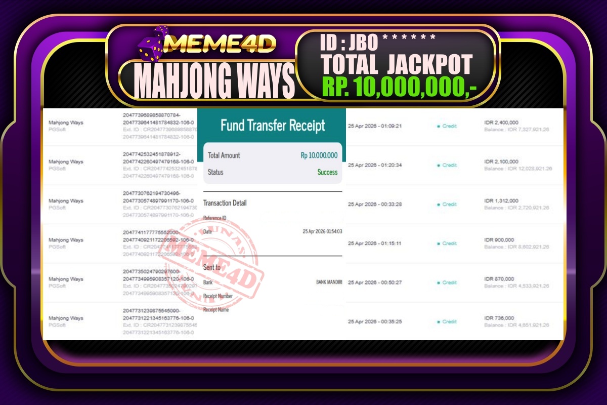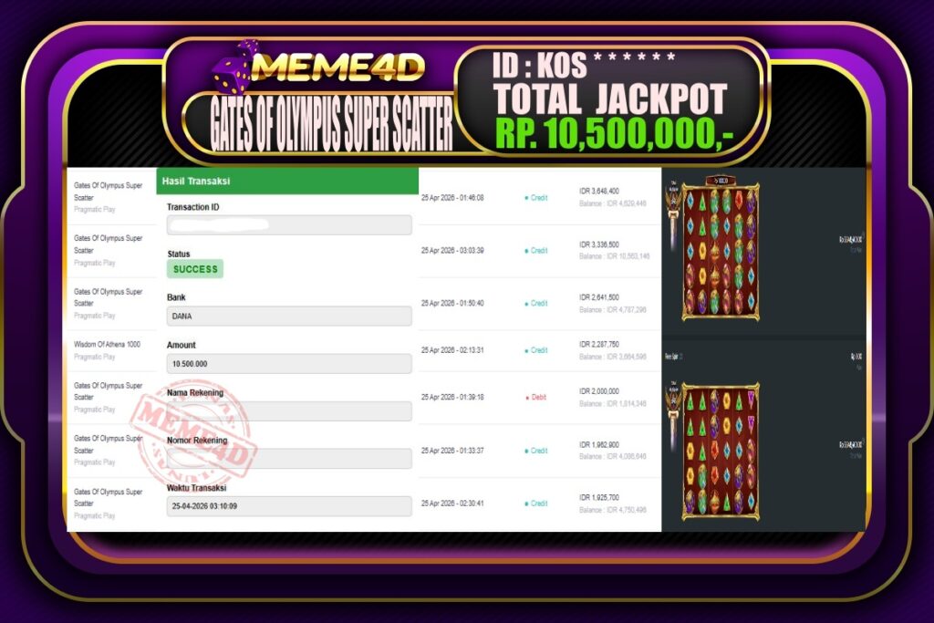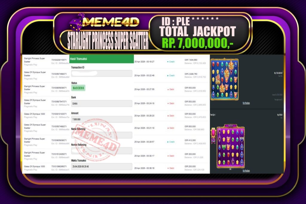 Bukti Jp MEME4D Slot Online 25 April 2026 – MEME4D merupakan situs terpercaya yang selalu membayar berapapun kemenangan semua pemain nya.