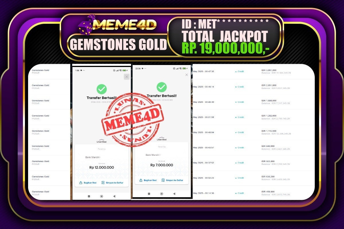 Bukti Jp MEME4D Slot Online 21 Mei 2025– MEME 4D merupakan situs terpercaya yang selalu membayar berapapun kemenangan semua pemain nya.