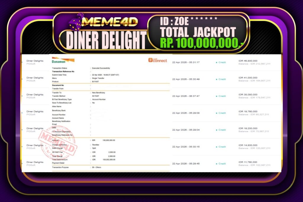 Bukti Jp MEME4D Casino Online 23 April 2026 – MEME4D merupakan situs terpercaya yang selalu membayar berapapun kemenangan semua pemain nya.
