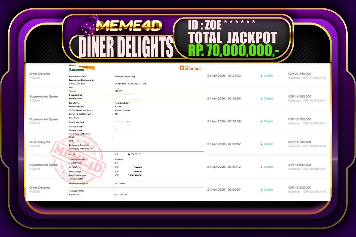 Bukti Jp MEME4D Slot Online 21 April 2026 – MEME4D merupakan situs terpercaya yang selalu membayar berapapun kemenangan semua pemain nya.