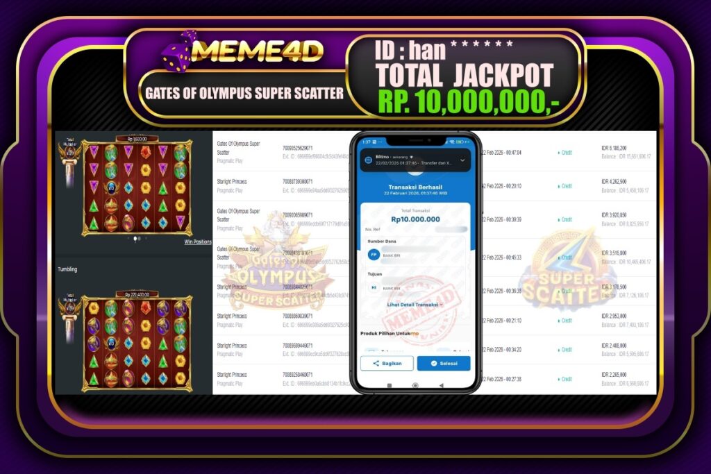 Bukti Jp MEME4D Slot Online 22 February 2026 – MEME4D merupakan situs terpercaya yang selalu membayar berapapun kemenangan semua pemain nya.