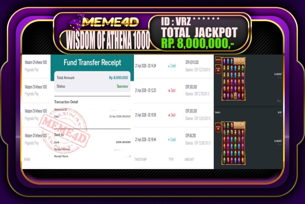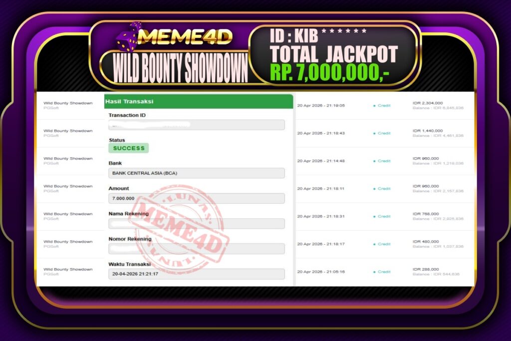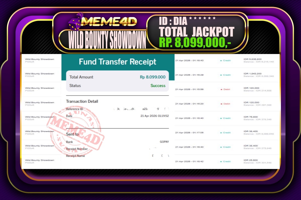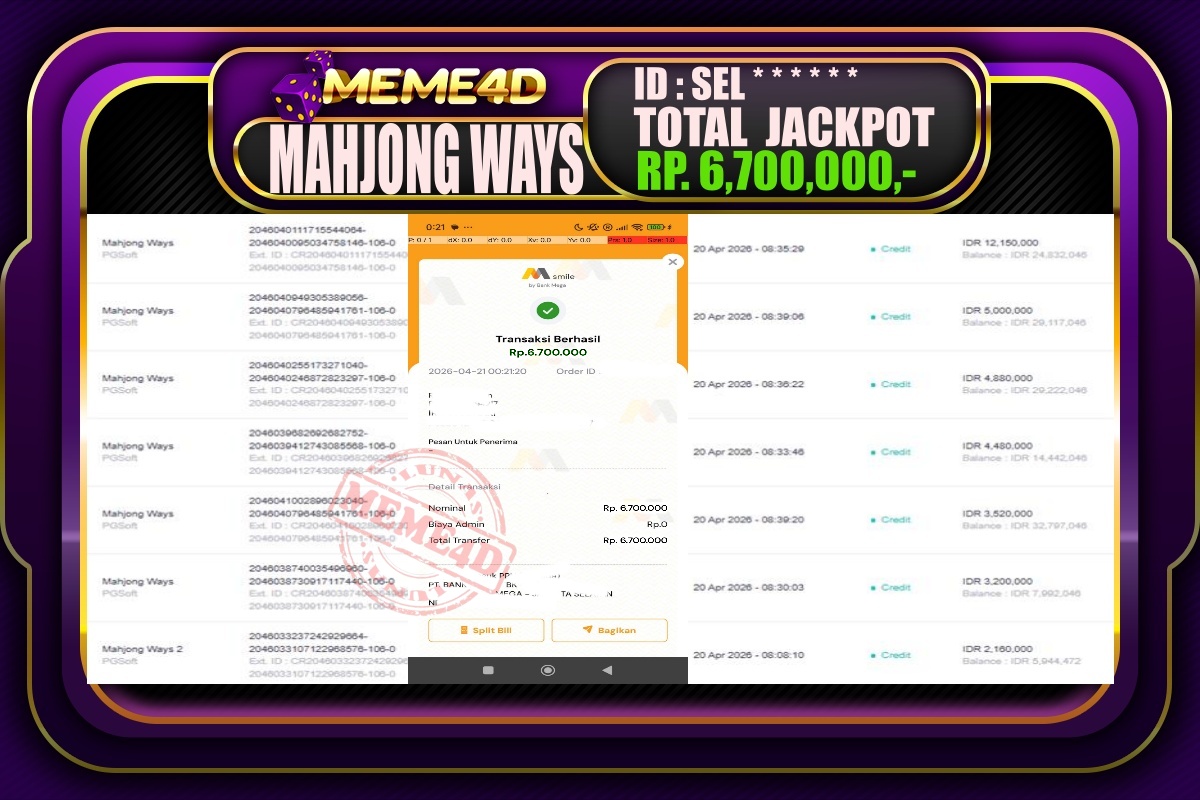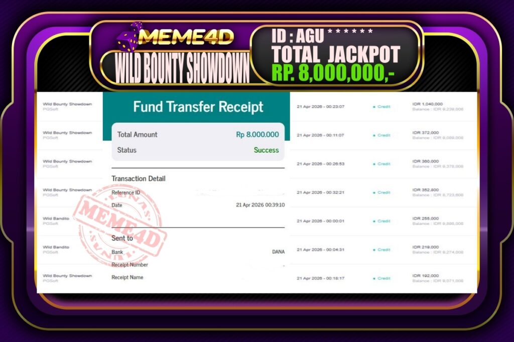 Bukti Jp MEME4D Slot Online 21 April 2026 – MEME4D merupakan situs terpercaya yang selalu membayar berapapun kemenangan semua pemain nya.