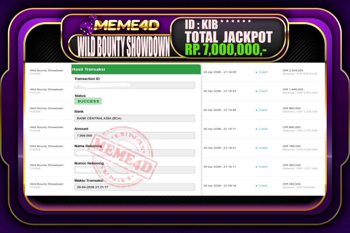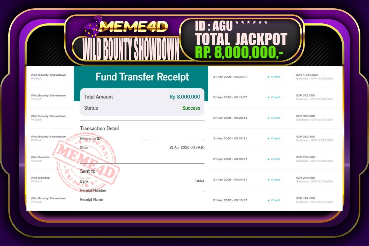 Bukti Jp MEME4D Slot Online 21 April 2026